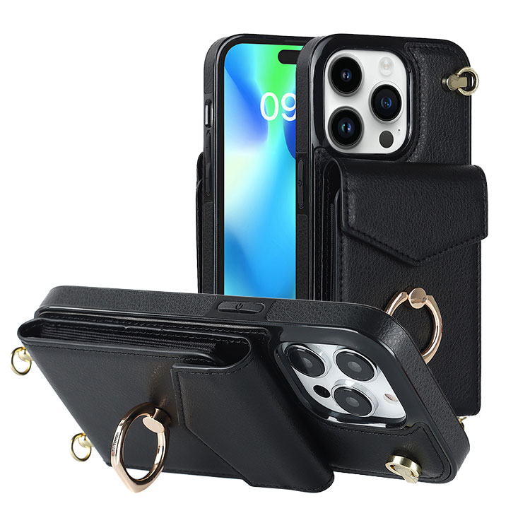 This case was exactly what I was looking for. It has several slots in the wallet area. The finger hook on the back works great. The adjustable strap is long enough to comfortably wear as a crossbody.