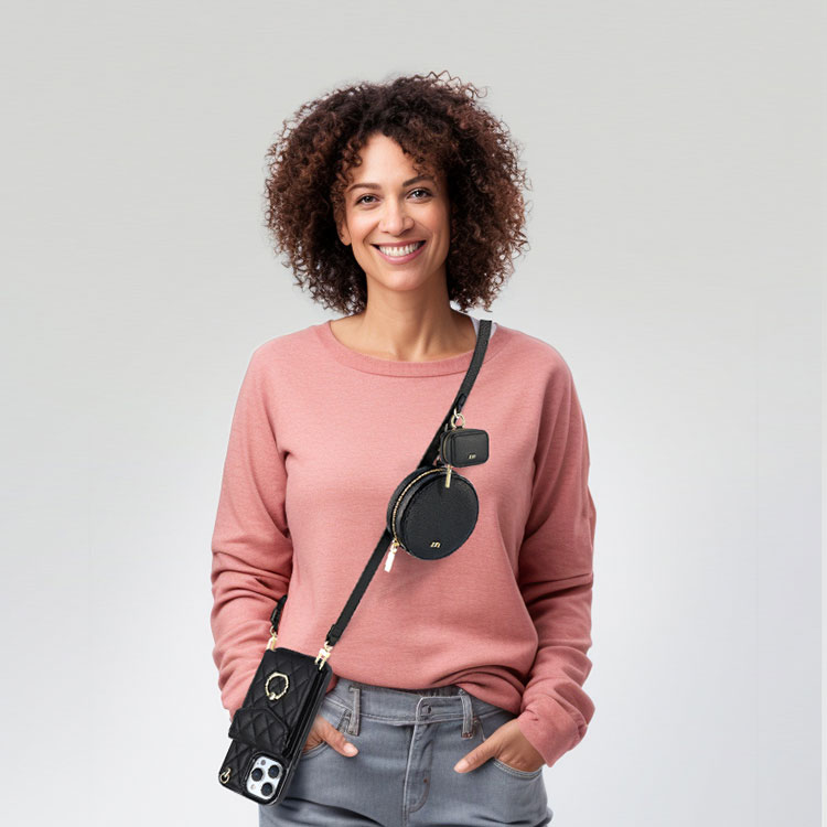 [Round Bag]This Casebus classic lychee round pouch support match with the Casebus crossbody Phone case Or Strap.