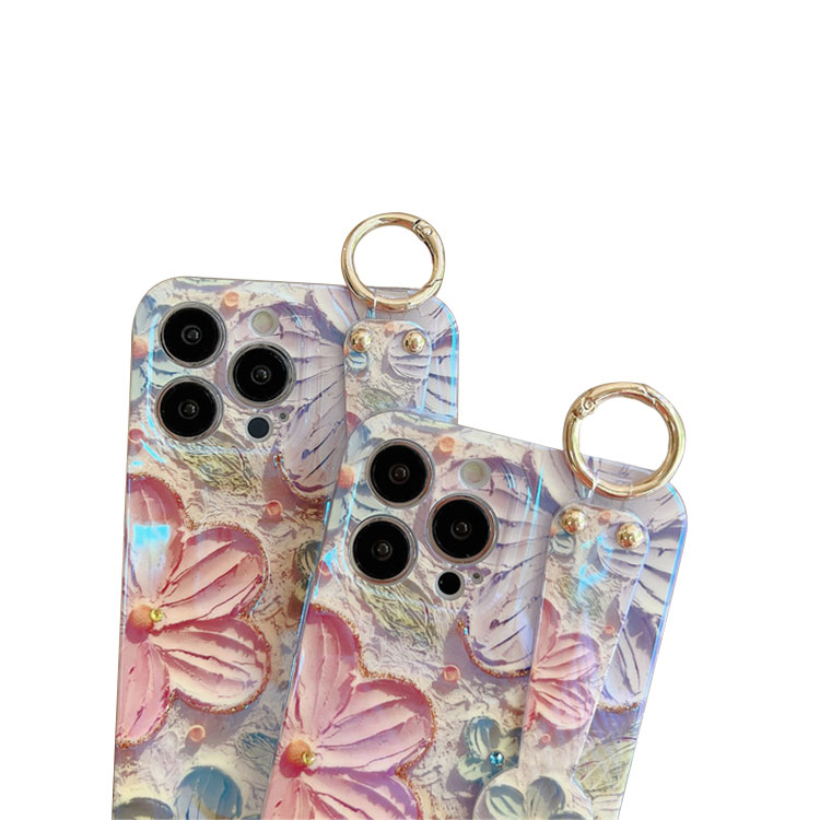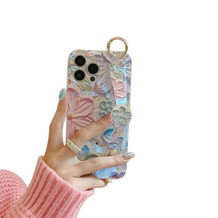DESTINEE Casebus Fashion Floral Phone Case, Oil Painting Flower Pattern, with Wrist Strap Kickstand, Shockproof Protective Cover