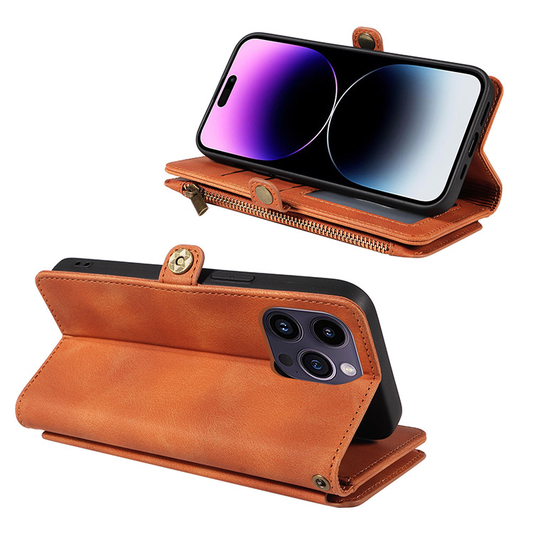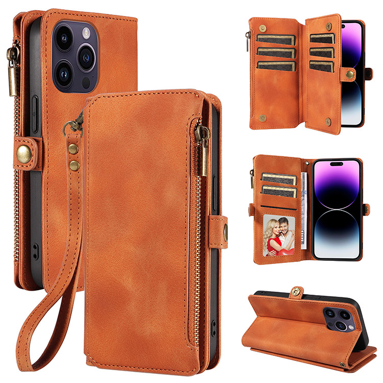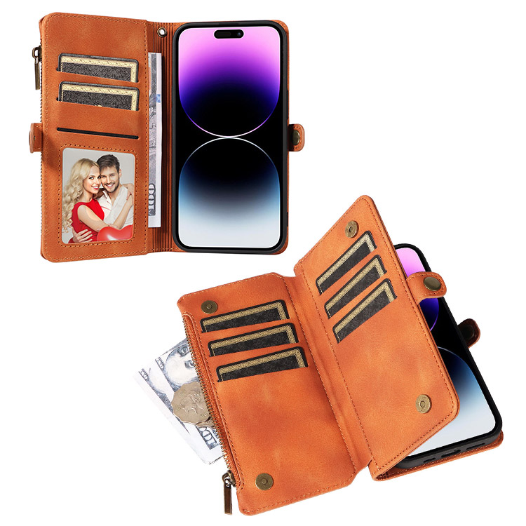 Casebus Étui portefeuille pour téléphone à rabat, charge sans fil, dragonne et porte-cartes avec pochette zippée, protection intégrale, housse à béquille