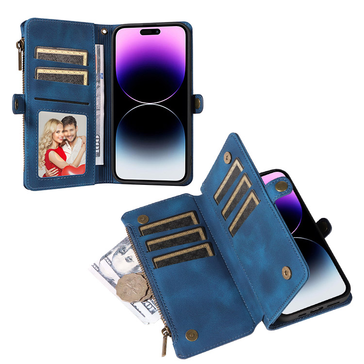 [Scomparti per carte e cerniera e braccialetto] La custodia include 9 porta carte + 1 borsa con cerniera + 1 scomparto per contanti, per contenere documenti d'identità, carte di credito, patenti, banconote, monete e un po' di contanti senza problemi. La cerniera è stata testata più di 5000 volte; con un laccetto rimovibile, che fornisce un metodo di presa opzionale.