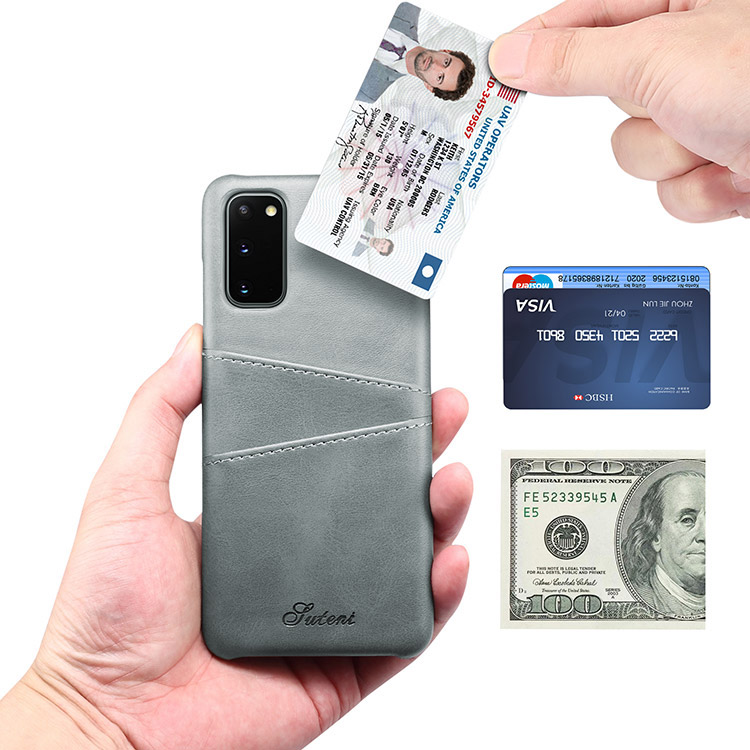 Leather back case with card slots holder: 2 card / cash slots.It allows you to easily access your cards or cash conveniently. For the best performance, please only insert 1 card for each card slot.