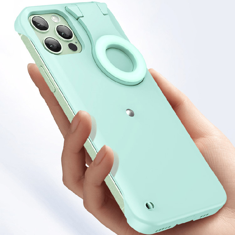 [SLIM AND EASY TO CARRY] This selfie phone case is made of imported high-quality PC and ABS materials, leaving no fingerprints, no fading, with a silky smooth touch, and the non-slip bumper provides excellent grip. There is no border design on the side, which is easy to carry. The side touch and natural grip make the ring light case easy to hold. The four corners of the protective shell have been upgraded and reinforced, which is light, thin and resistant to fall.