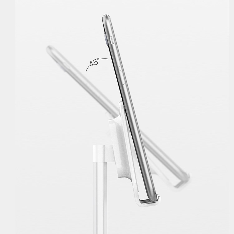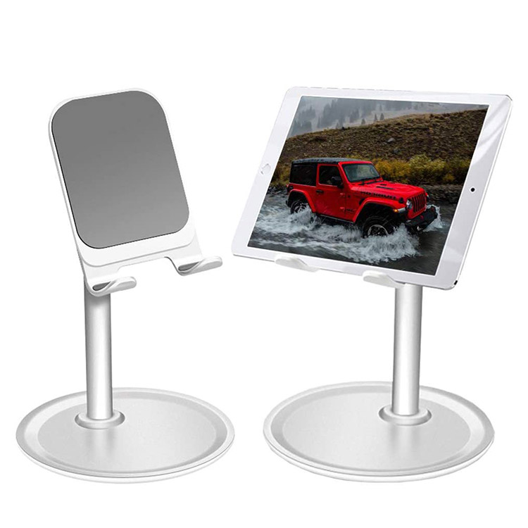 [Sturdy and Durable Stand] The cell phone holder built with solid Al alloy and with protective rubber keep your device from scratch. The bottom is made of ABS, which can prevent slip. Non skip base design to keep the device stable.