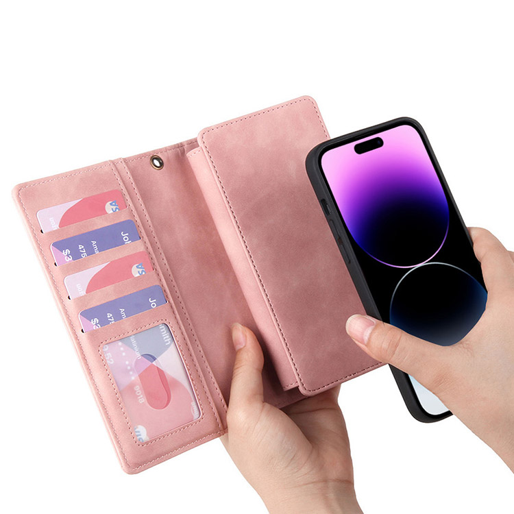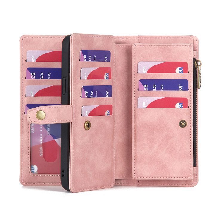 Casebus Classic Detachable Magnetic Wallet Phone Case, 11 Card Slots, 2 in 1, Leather Zipper, Folio Flip, Money Pocket Clutch Case