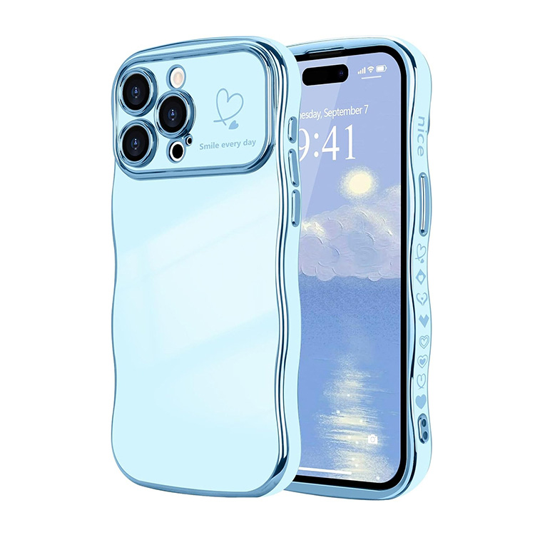 JENNIFER Casebus Luxury Plating Phone Case, Heart Wave Shaped Curled Edge Design, Shockproof Protective Cover