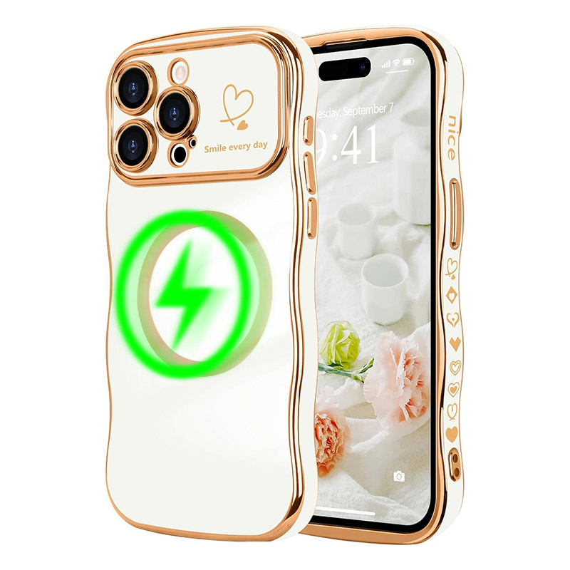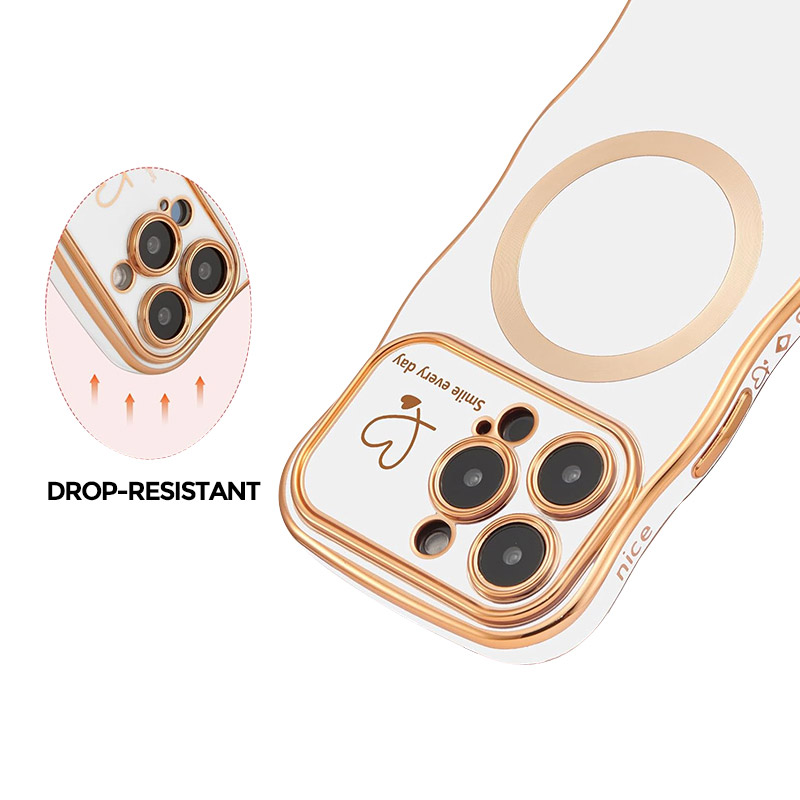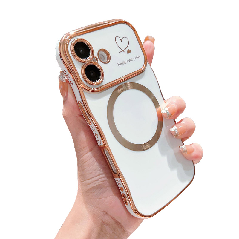 EVELYN Casebus Luxury Plating Phone Case, Support Magsafe, Love Heart Wave Frame Curly Shape, Shockproof Protective Cover