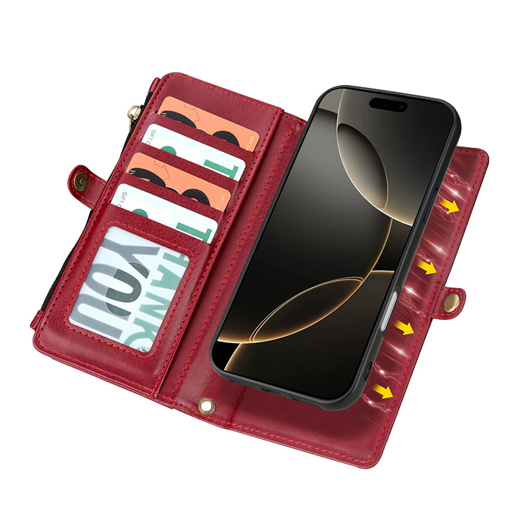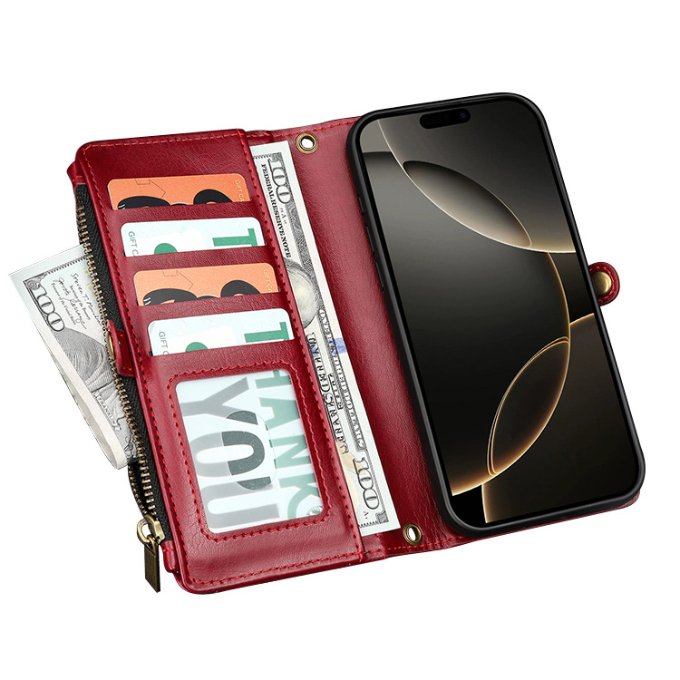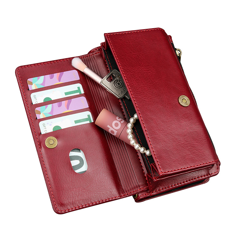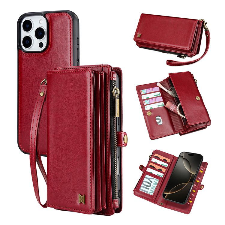 MONICA Casebus Detachable Wallet Phone Case, Magnetic Flip Zipper Cover, with Credit Card Holder & Wrist Strap
