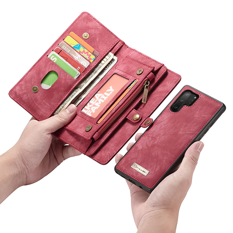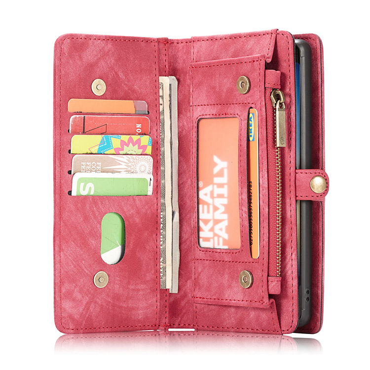 Casebus Étui classique détachable pour téléphone portable, 11 fentes pour cartes, 2 en 1, fermeture éclair en cuir, folio à rabat, pochette d'argent.