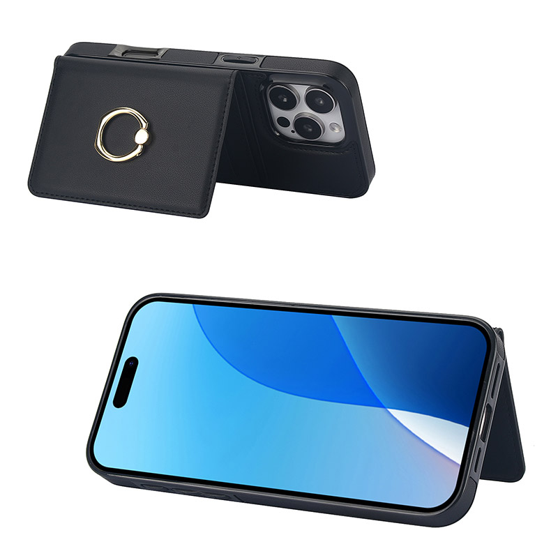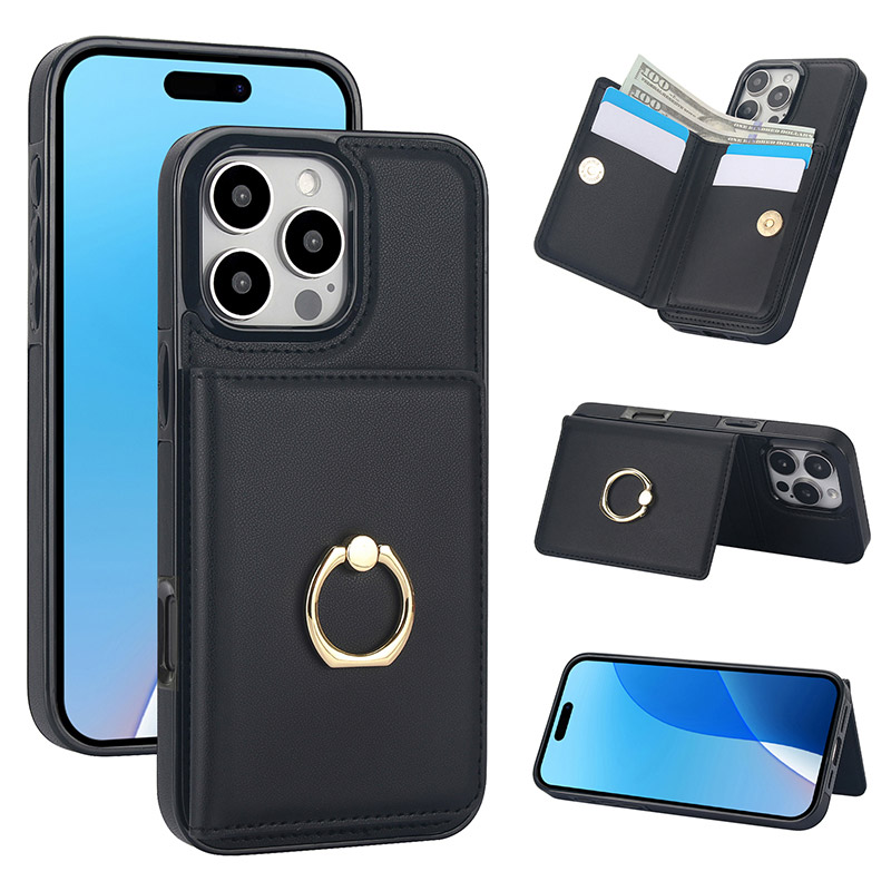 CLAIRE Casebus Classic Wallet Phone Case, Premium Leather, with 360° Rotation Finger Ring Kickstand & Card Slots