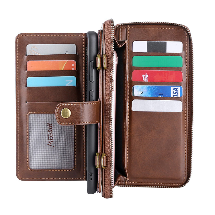 Casebus Classic Detachable Magnetic Wallet Phone Case, 11 Card Slots, 2 in 1, Leather Zipper, Folio Flip, Money Pocket Clutch Case