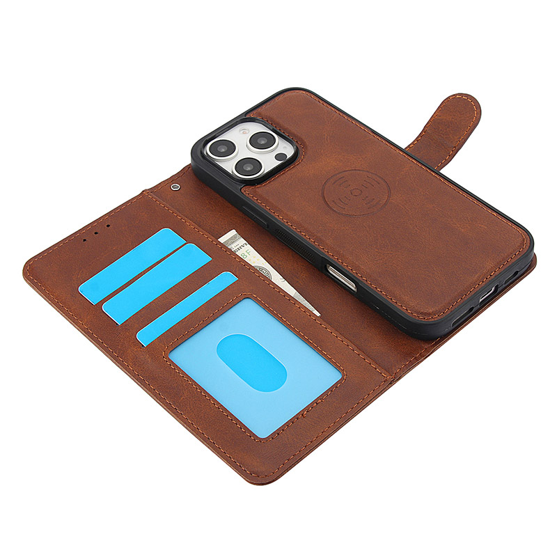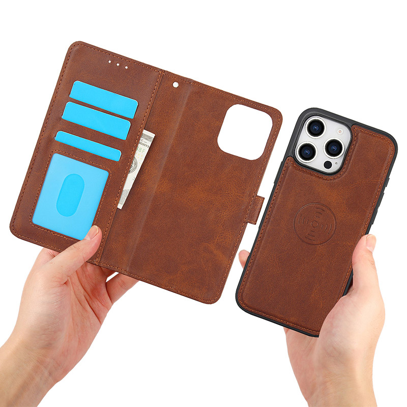 COURTNEY Casebus Abnehmbare Geldbörsen-Handyhülle, magnetischer Klappständer, hochwertiges Leder, mit Handgelenkband, stoßfeste Schutzhülle