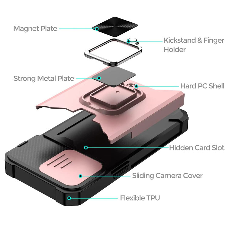 [Powerful Functions] Sliding camera cover protect the lenses from getting scratched and scuffed from your pocket.Built-in kickstand offer hands-free viewing,used it as ring holder,hold it sturdy in hand without accidentally dropping it. The magnet back easily attach to magnetic car mount,very convenient during driving time for navigation.Card slot on back to hold the card tightly. You will love how convenient it is with such powerful functions.