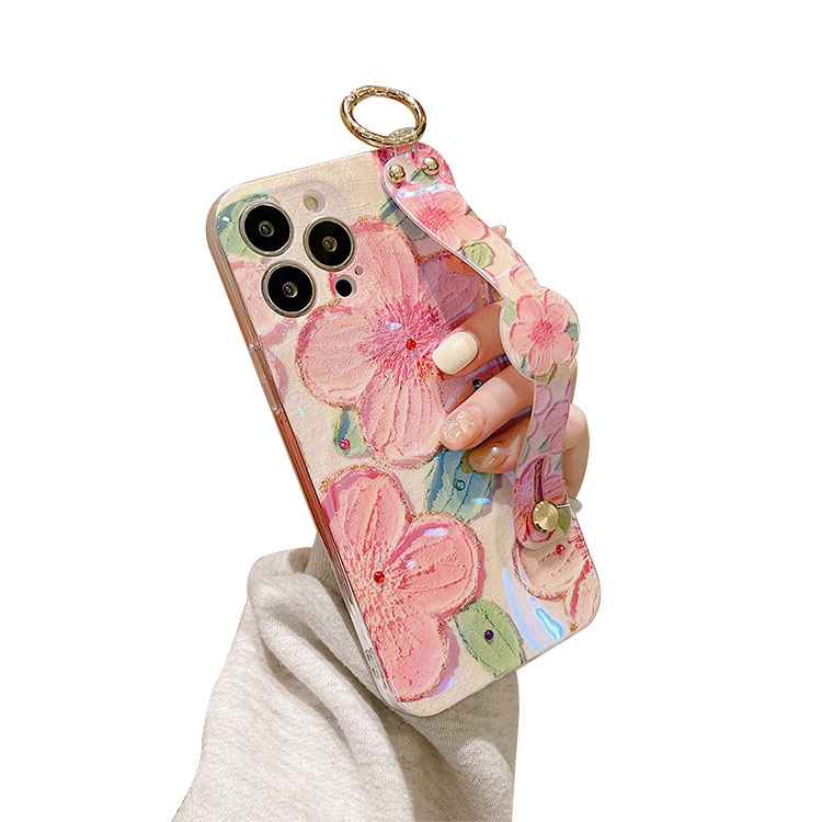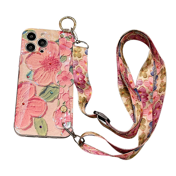 ARIELLE Casebus Fashion Flower Phone Case, Rhinestone Oil Painting Floral Design, with Crossbody Lanyard & Wrist Strap