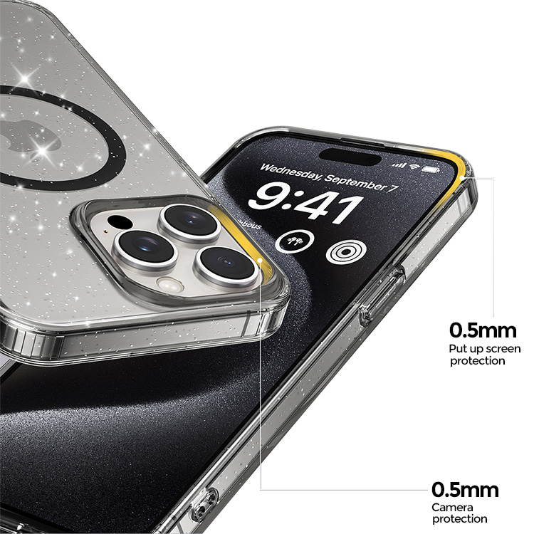 [Glitter Clear Design] Advanced anti-yellow material is used to keep the back of the case transparent for a long time. Enjoy the original beauty of your phone.