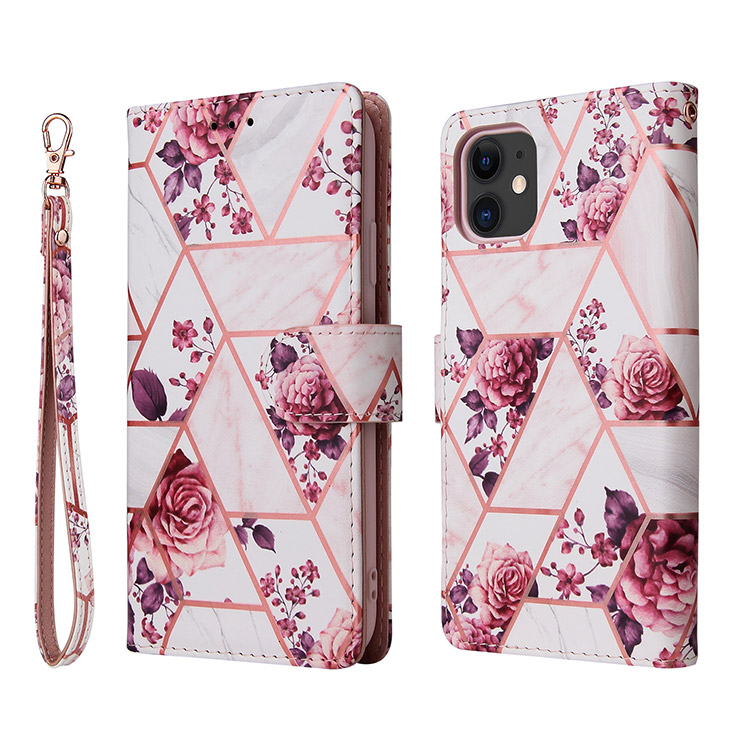 AUHERT Casebus Classic Marble Wallet Phone Case, Premium Leather, Credit Card Holder, Magnetic Closure, Wrist Strap, Kickstand Shockproof Case