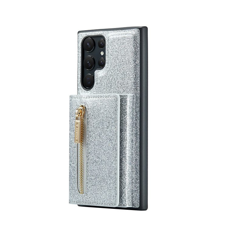 ALLISON M3 Casebus Magnetic Glitter Detachable Wallet Phone Case, Tri Fold 7 Card Slots Large Cash Pocket Trifold Card Holder Shockproof Back Cover