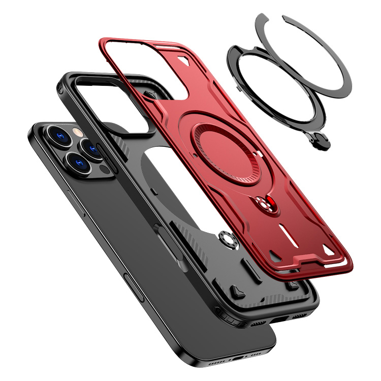 [360 Fixed Point Rotating Ring Stand] Diese Tasche verfügt über einen versteckten Ständer mit einem einzigartigen, patentierten Look. Im aufgeklappten Zustand bildet der versteckte Klappständer eine stabile dreieckige Struktur mit der Handyhülle. Der um 360° drehbare Ring bietet zwei Standmodi für die vertikale und horizontale Betrachtung, so dass Sie Ihre Hände frei haben und tun können, was Sie wollen.