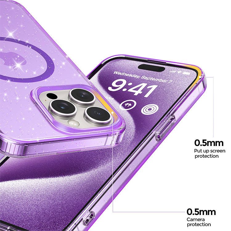 [Precise Cutouts] This clear glitter cute case is slim fit, lightweight and easy to grip. Exact cutouts for all buttons, ports, cameras and speakers. Support with MagSafe the most wireless chargers.