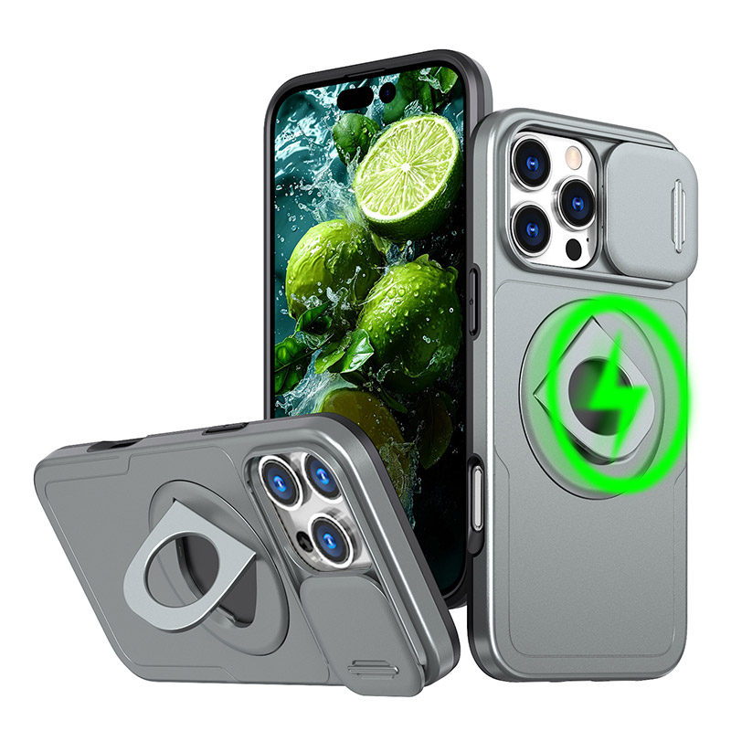 DALLAS Casebus Heavy Duty Magnetic Phone Case, Support Magsafe, with 360° Rotating Ring Kickstand & Slider Camera Lens Cover