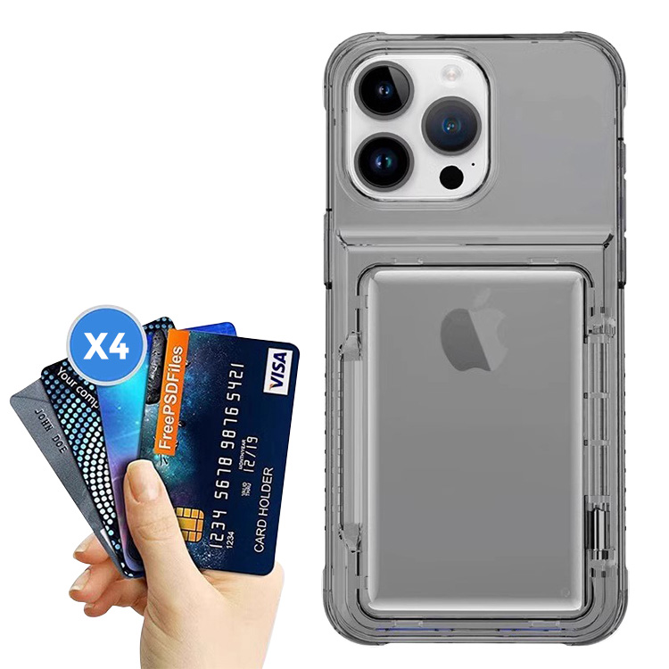 FINLEY Casebus Clear Wallet Phone Case, with Credit Card Holder, Flip Slot, Heavy Duty Shockproof Protective Transparent Hard Back Cover