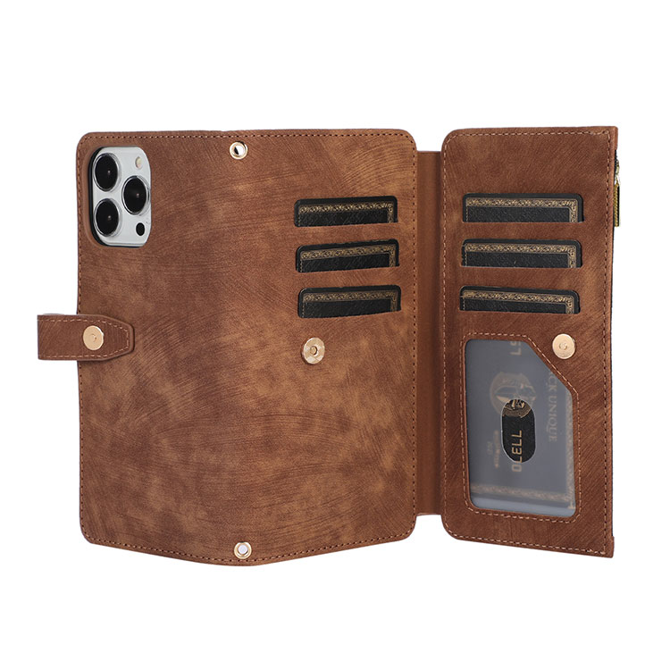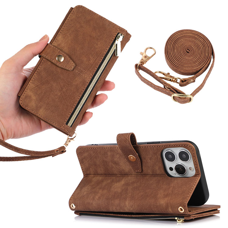 YOANA Casebus Flip Crossbody Wallet Phone Case, With 9 Card Slots Zipper Pocket Retro Leather Hand Strap Kickstand Magnetic Closure Shockproof Cover