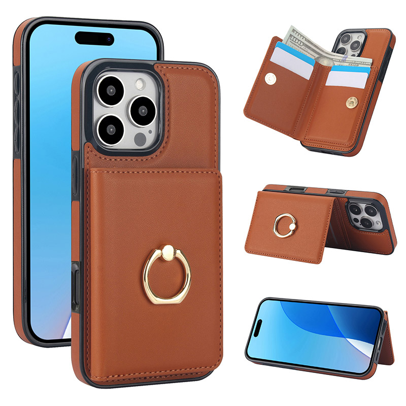 CLAIRE Casebus Classic Wallet Phone Case, Premium Leather, with 360° Rotation Finger Ring Kickstand & Card Slots