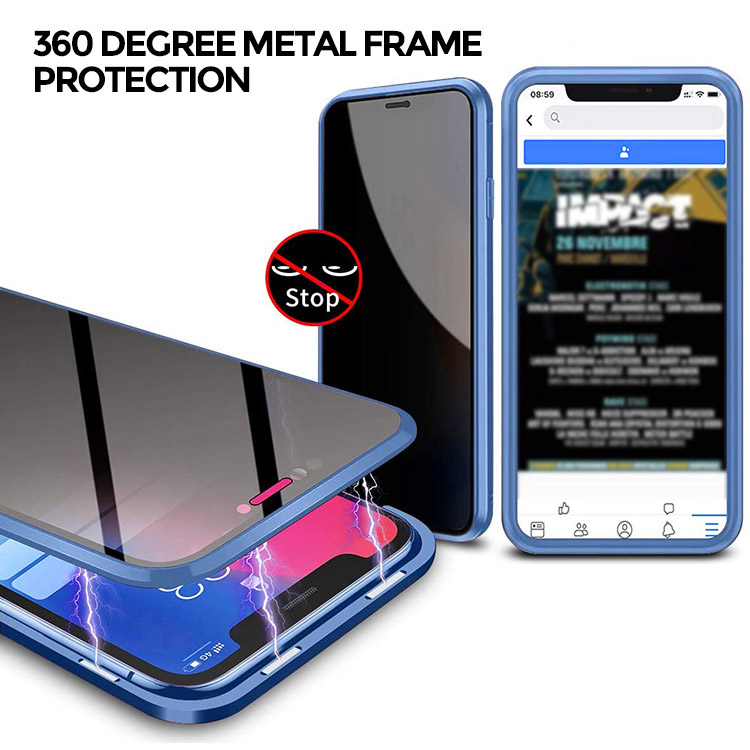 LOONEY Casebus Double Sided HD Clear Anti-Peep Magnetic Phone Case, Built in Privacy Screen Protector Metal Bumper Frame 360 Full Protective Cover