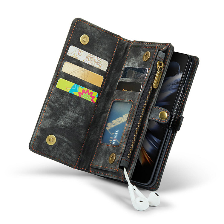 DONTAYE Casebus Classic Detachable Magnetic Wallet Phone Case, 11 Card Slots, 2 in 1, Leather Zipper, Folio Flip, Money Pocket Clutch Case