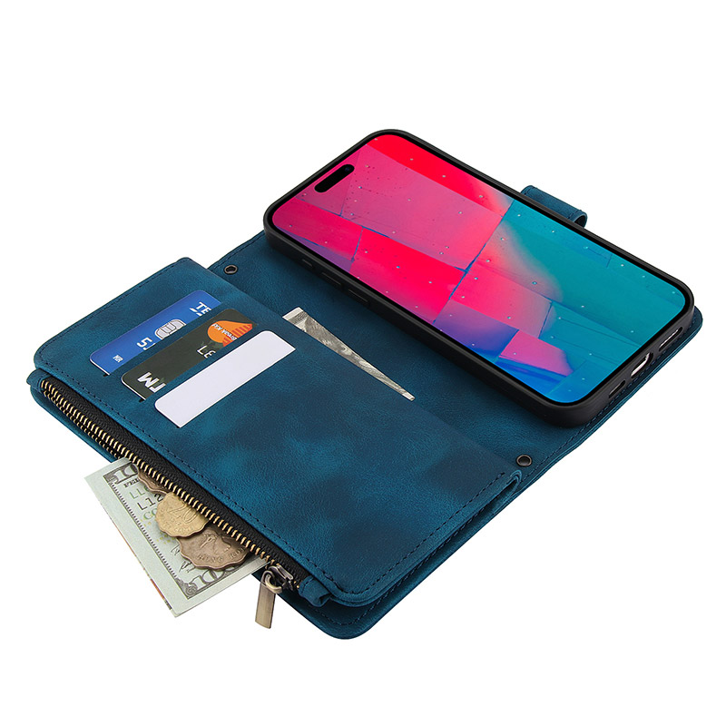 Casebus Classic Crossbody Wallet Phone Case, Premium Leather, Credit Card Holder, Zipper Pocket Purse Handbag, Kickstand Shockproof Case