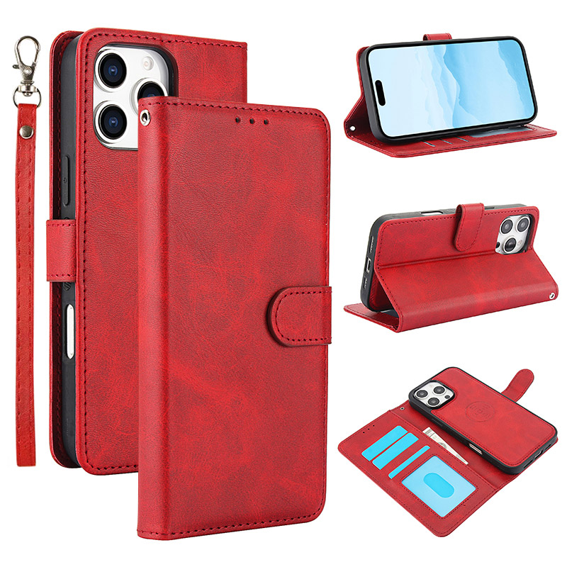 COURTNEY Casebus Detachable Wallet Phone Case, Magnetic Flip Kickstand, Premium Leather, with Wrist Strap, Shockproof Protective Cover