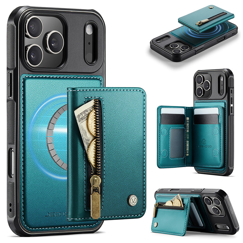 BLAKE Casebus 2 in 1 Detachable Wallet Phone Case, Support Magsafe, Leather Zipper Flip Purse, with Card Holder & RFID Blocking