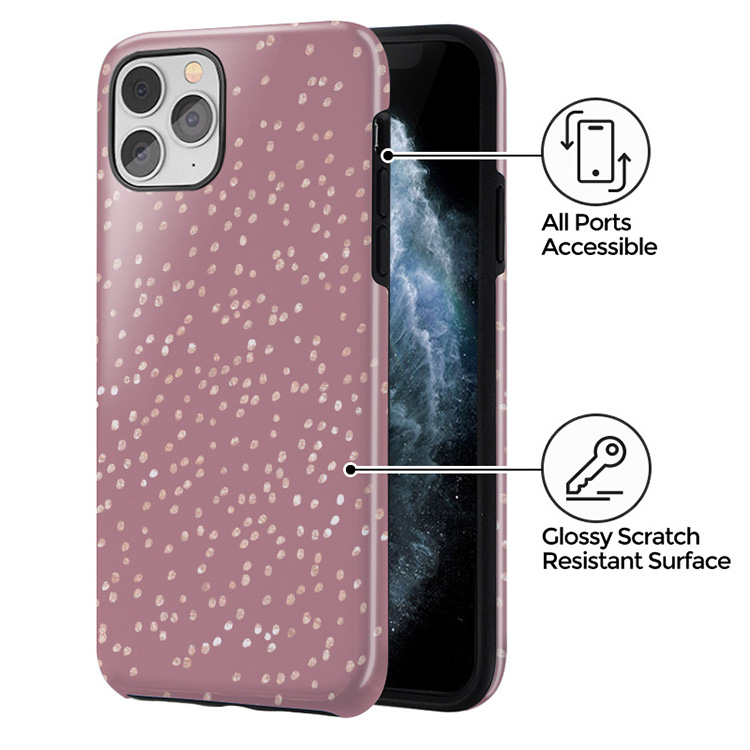 Trendy mauve color as a background for the gold-colored spots creates true beauty. Make your Phone stand out with our protective and pretty Hot Cocoa phone case. The spotted pattern adds a touch of luxury to your phone, while the case's hard-shell nature offers much-needed protection.