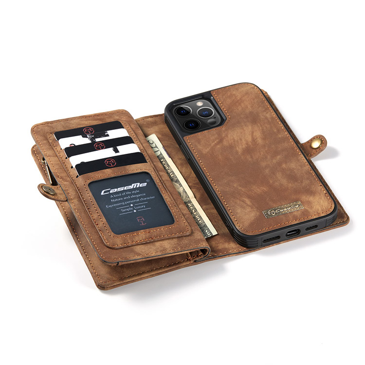 DONTAYE Casebus Classic Detachable Magnetic Wallet Phone Case, 11 Card Slots, 2 in 1, Leather Zipper, Folio Flip, Money Pocket Clutch Case