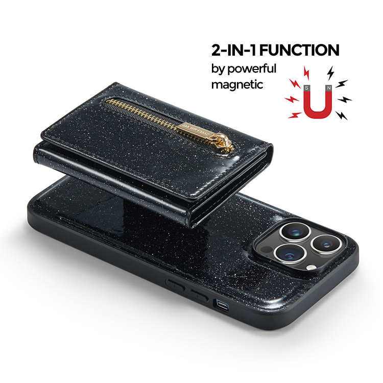 [2in1 Design] Diese Brieftasche ist aus hochwertigem Glitzerleder + TPU-Stoßfänger gefertigt. Eine abnehmbare magnetische Zwei-in-Eins-Telefontasche, die aus einer separaten Geldbörse und einer Rückabdeckung besteht. Machen Sie Ihre Arbeit, Ihr Leben und Ihre Reisen bequemer.