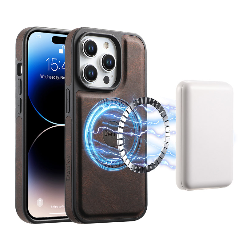Casebus Electroplated Leather Phone Case, Support Magsafe, Magnetic Card Holder, with Kickstand