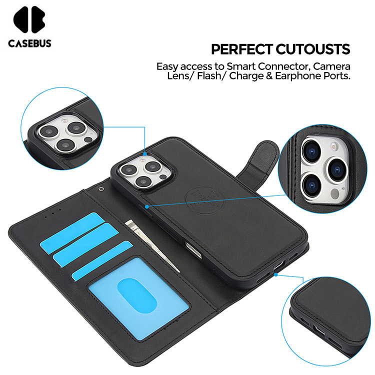 COURTNEY Casebus Detachable Wallet Phone Case, Magnetic Flip Kickstand, Premium Leather, with Wrist Strap, Shockproof Protective Cover