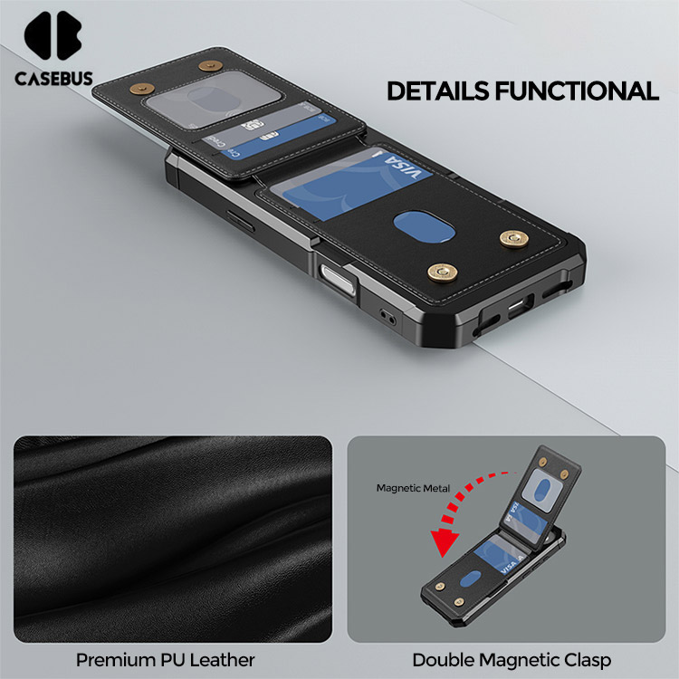 [Closure for Security] Equipped with a double magnetic clasp and flip design, this wallet case ensures your cards stay securely in place, preventing accidental falls. The newly designed structural lock keeps cards safe and accessible.