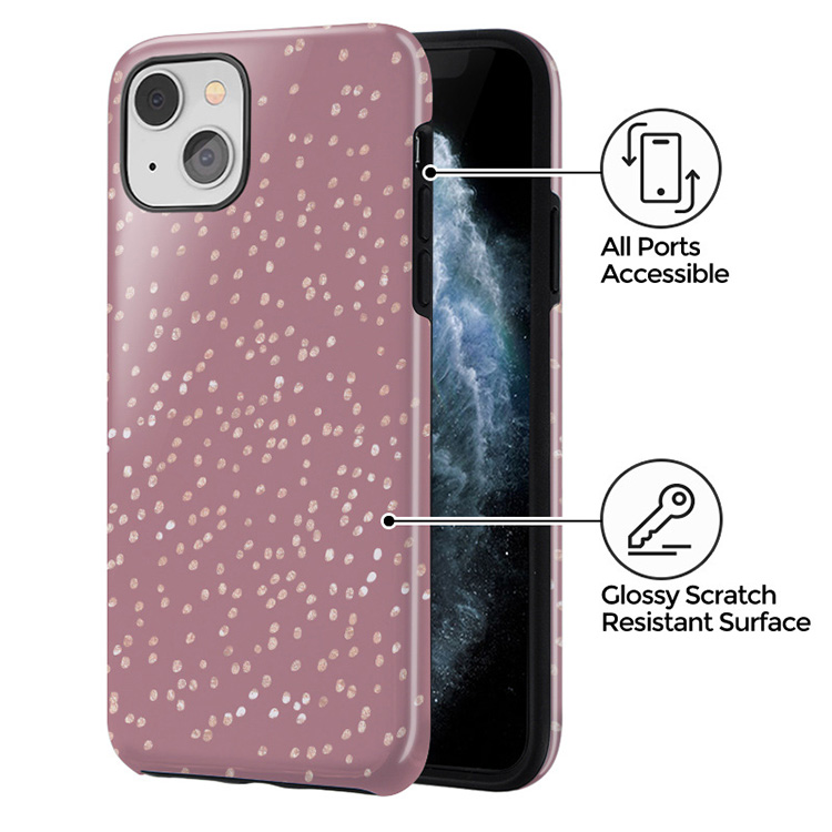 Trendy mauve color as a background for the gold-colored spots creates true beauty. Make your Phone stand out with our protective and pretty Hot Cocoa phone case. The spotted pattern adds a touch of luxury to your phone, while the case's hard-shell nature offers much-needed protection.