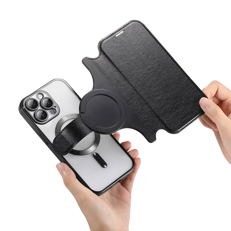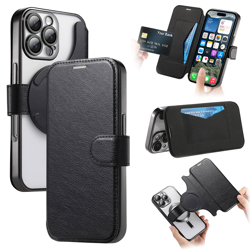 [Detachable 2 in 1 Design] Including one electroplate basic case built-in metallic ring (compatible with magSafe accessories) and one flip cover with card holder, These 2 Parts can be installed together by the magnetic function; Works great with a power bank, magnetic car mount, wireless charger, or phone ring holder.