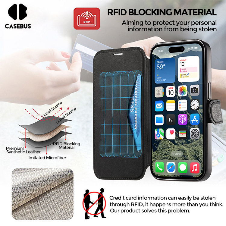 Casebus Classic Wallet Phone Case, 9 Card Slots, Premium Leather, Credit Card Holder, Shockproof Case
