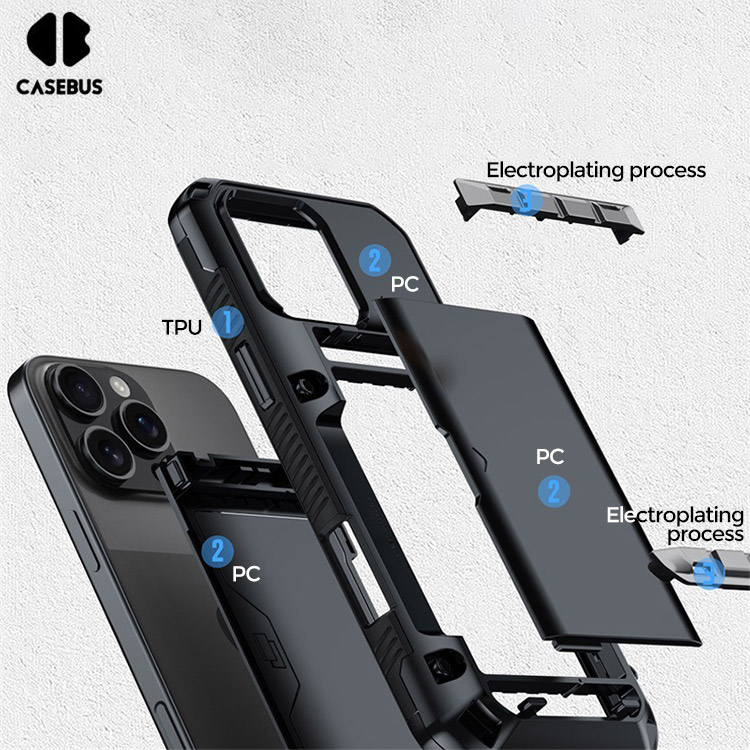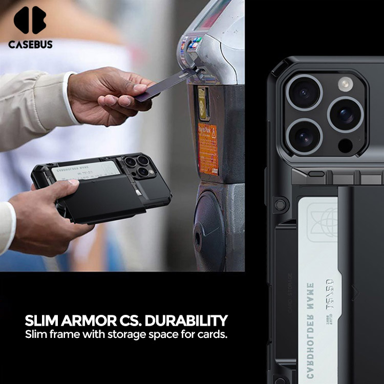 Casebus Classic Phone Case, with Credit Card Holder, Sliding Slot Heavy Duty Protection Dual Layer Armor Shell Cover