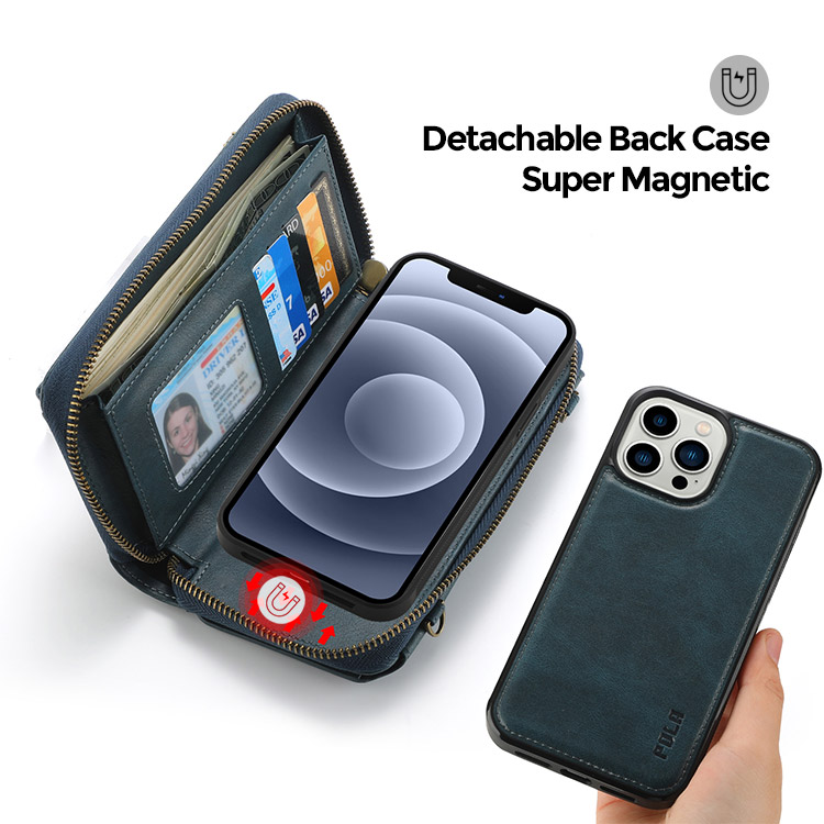 Casebus Classic Detachable Magnetic Wallet Phone Case, 11 Card Slots, 2 in 1, Leather Zipper, Folio Flip, Money Pocket Clutch Case