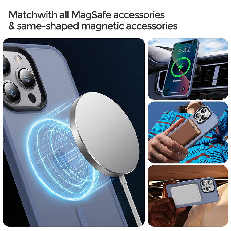 [Compatibilità perfetta con gli accessori MagSafe] Questa custodia si allinea perfettamente e in modo sicuro con MagSafe e altri caricatori certificati Qi per una ricarica wireless sicura e veloce.Il magnete è 4 volte più forte del normale, può essere collegato saldamente a tutti gli accessori MagSafe, come il caricabatterie MagSafe, il portafoglio, il pacco batteria, il supporto per auto, e non cadrà indipendentemente dalla rotazione o dall'oscillazione.