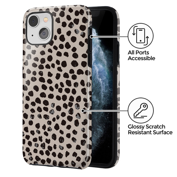 Cute cream color as a background for the unique pattern of asymmetrical black spots creates a real eye-catcher in our Almond Latte phone case. The spotted pattern adds a touch of luxury to your phone, while the case's hard-shell nature offers much-needed protection making it a popular choice between fashion lovers.