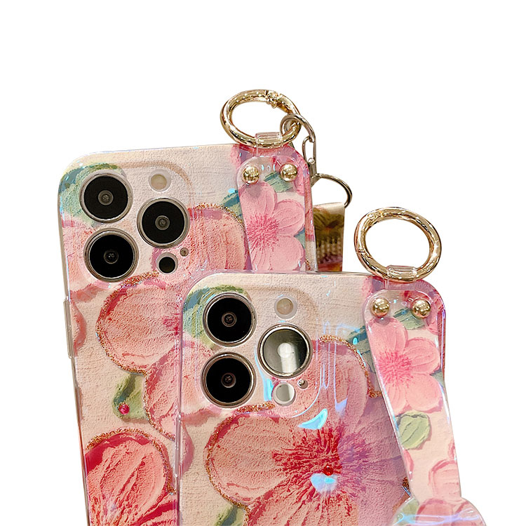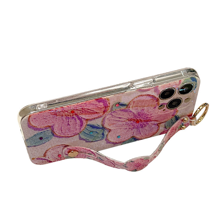 ARIELLE Casebus Fashion Flower Phone Case, Rhinestone Oil Painting Floral Design, with Crossbody Lanyard & Wrist Strap