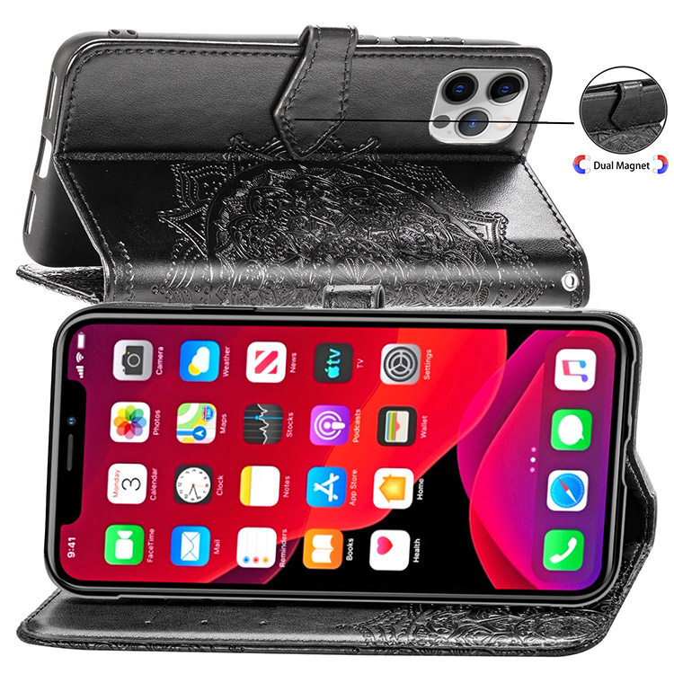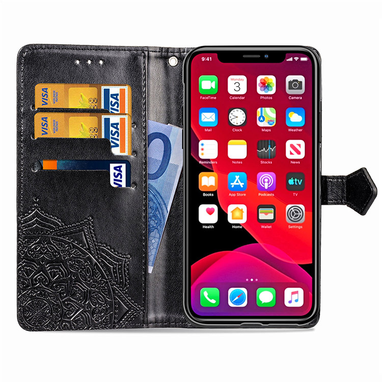 OLENA Casebus Mandala Leather Wallet Phone Case, Flip Folio, Premium Leather, Credit Card Holder, Magnetic Closure, Kickstand Shockproof Case