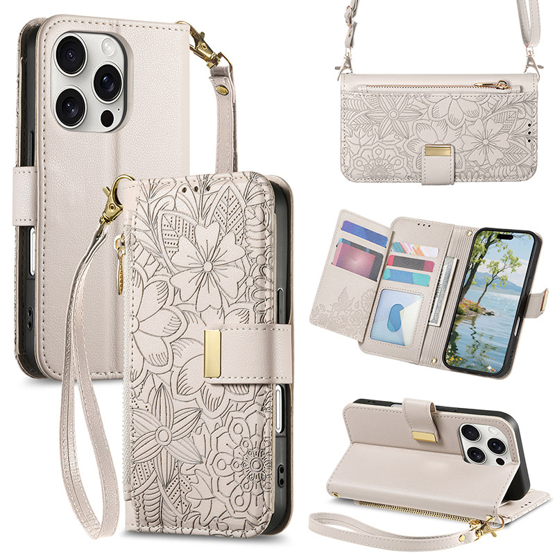 Casebus Classic Crossbody Wallet Phone Case, Premium Leather, Credit Card Holder, Zipper Pocket Purse Handbag, Kickstand Shockproof Case