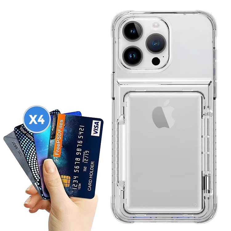 FINLEY Casebus Clear Wallet Phone Case, with Credit Card Holder, Flip Slot, Heavy Duty Shockproof Protective Transparent Hard Back Cover