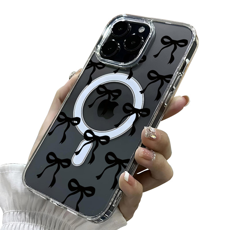 SOFIA Casebus Clear Bow Phone Case, Compatible with Magsafe, Aesthetic Bowknot Transparent Shockproof Protective Cover